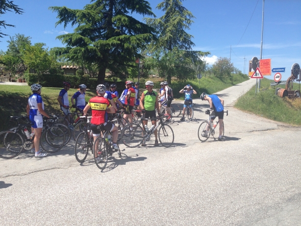 Nach Moutier folgte die zweite Steigung, danach der zweite Kontrollposten. Dort brach über die Radler herein was sich seit wenigen Kilometern mit schwarzen Wolken schon ankündigte: Regen. Für die VMCler nichts Neues, viele Ausfahrten in diesem Jahr wurden schon von Nässe begleitet. Aber auf der bevorstehenden Abfahrt hätte es nicht auch noch nasse Strassenbeläge bebraucht. Glücklicherweise war es nur eine vereinzelte Regenwolke welche mal eben etwas Dampf ablassen musste. Die wunderschöne Abfahrt hinunter nach Bassecourt konnte so doch noch genossen werden.